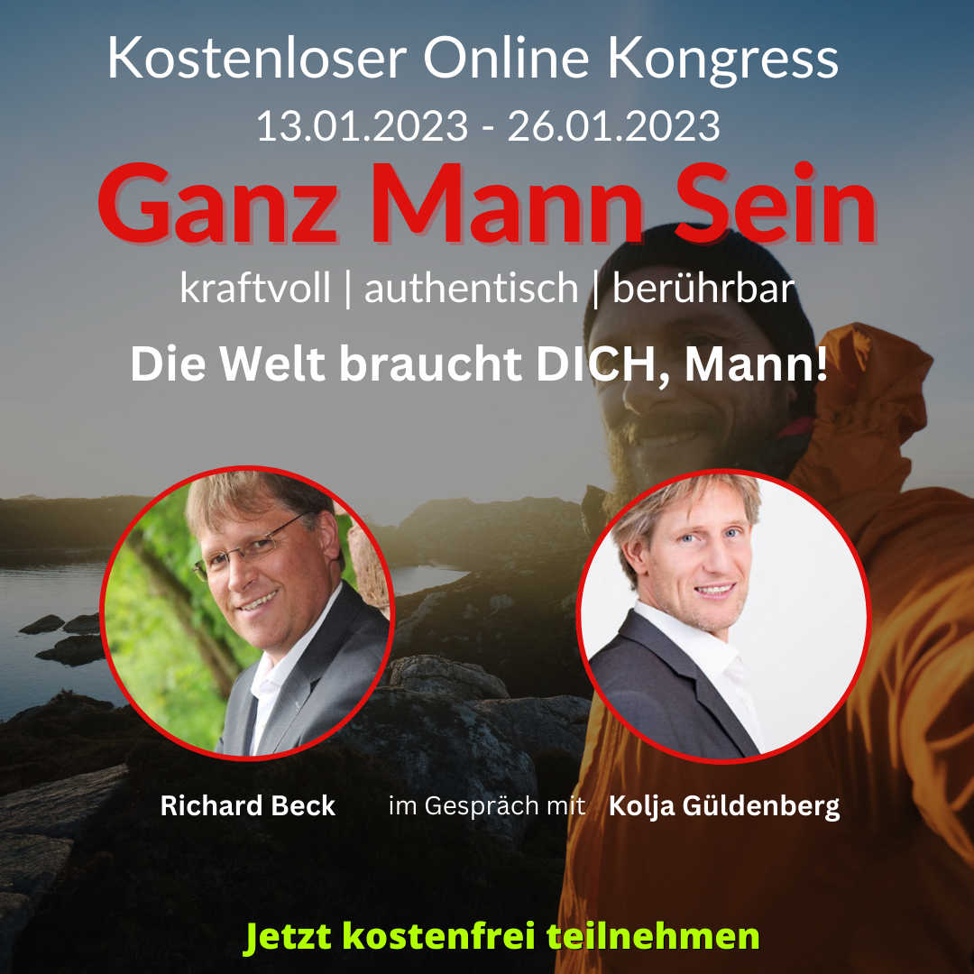 Im kostenlosen GanzMannSein Online Kongress vom 13. Januar bis 26. Januar 2023 bekommt ihr 14 Tage geballtes Wissen, Erfahrungen & Erkenntnisse über Themen, wie: