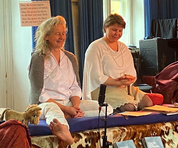 In den gemeinsamen Vormittagen luden sie Qualitäten ein wie Verlangsamung, Sinken, Wahrnehmen, Verletzlichkeit, Zartheit, Naturverbundenheit, Kraft, schlichte Begegnungsübungen, Träumen. Und auch das weitere Programm stand im Zeichen der Einfachheit und Berührbarkeit.